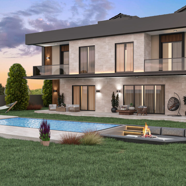 İç mekanda ise ferah ve fonksiyonel bir planlama tercih edilmiştir. Geniş oturma alanları, modern mutfak tasarımı ve konforlu yatak odalarıyla her detayı özenle düşünülmüş bu proje, lüks ve rahatlığı bir araya getirerek kullanıcılarına özel bir yaşam alanı sunmaktadır.
