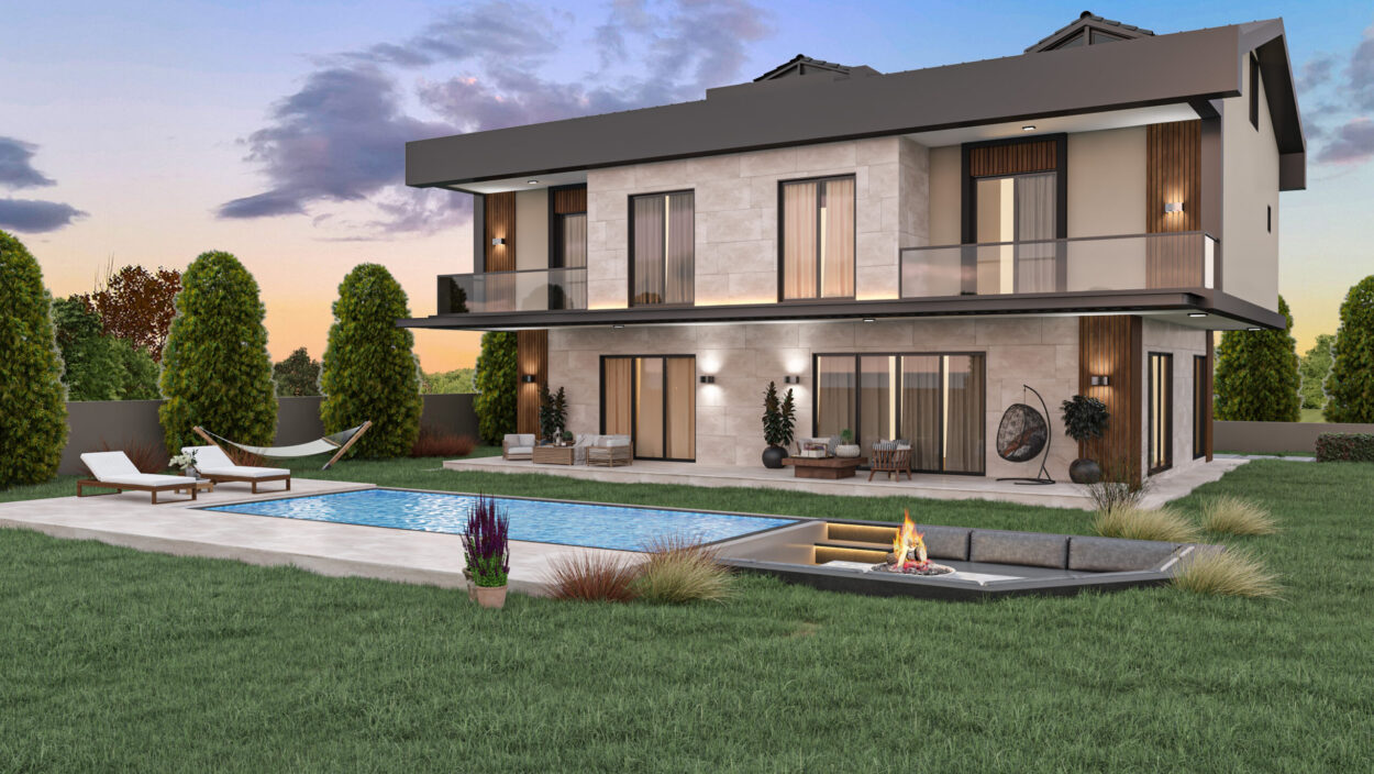Geniş bahçesi, özel yüzme havuzu ve dinlenme alanlarıyla keyifli vakit geçirme imkanı sunan bu villa, dış mekan konforunu en üst düzeye çıkarıyor. Şömineli oturma alanı, açık hava barbekü köşesi ve şık peyzaj düzenlemeleri ile benzersiz bir yaşam deneyimi vadediyor.