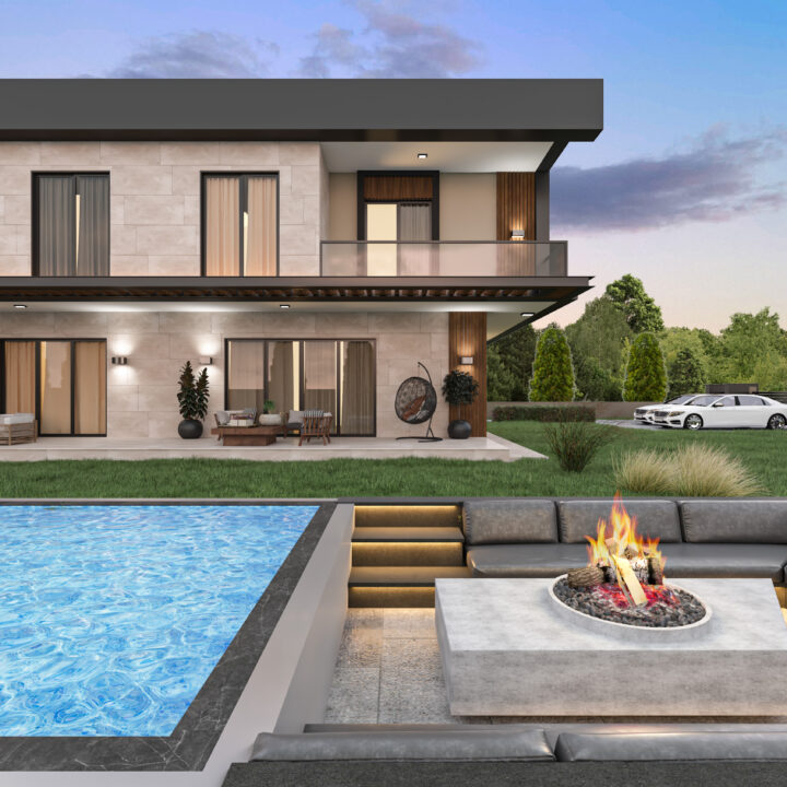 Bu özel villa projemiz, doğayla iç içe, konfor ve estetiğin birleştiği bir yaşam alanı sunmaktadır. Modern mimari çizgilerle tasarlanan villa, geniş cam yüzeyleriyle doğal ışığı maksimum düzeyde iç mekana taşırken, dış cephede kullanılan ahşap ve taş dokularıyla sıcak ve doğal bir atmosfer yaratmaktadır.