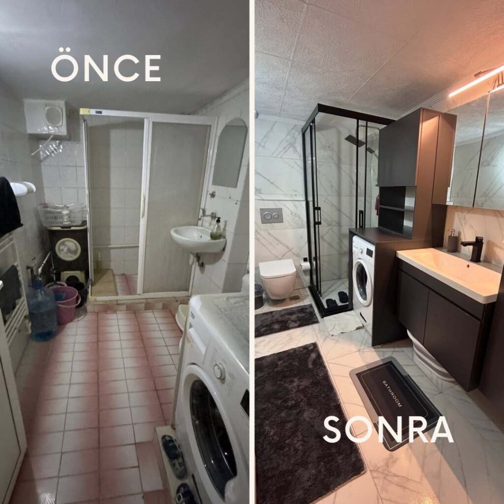 Banyo yenilemelerinde ise hem konfor hem de şıklık bir arada düşünülmelidir. Duşakabin sistemleri, duvara gömme rezervuarlar, geniş ayna kullanımı, niş raf uygulamaları ve modern seramik tercihleri ile banyolar daha düzenli, daha estetik ve daha fonksiyonel hale getirilebilir. Özellikle dar banyolarda cam bölmeler, açık tonlar ve kompakt mobilyalar alanı görsel olarak büyütür.